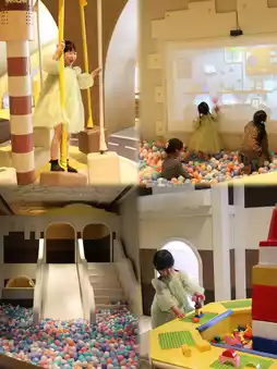 The indoor playground on the first basement floor is a kid's paradise! Slides, building blocks, a ball pit…