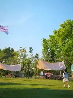 At the fun camp near the course, let your children run freely on the eye-pleasing green lawn, camping, picnicking, flying kites, sliding down slides - outdoor family time is always wonderful!