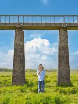 ▪️Sunset silhouette: people talking to the sunset at the end of the plank road