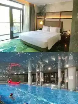 5️⃣ In the evening, I ate a Vietnamese noodle in the Garden Expo, went to the hotel to swim + soak in the hot spring, I like the design of Indigo, the hotel is ore and mining elements are quite good
