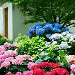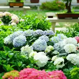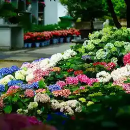 The hydrangeas here bloom with such abandon, their pink and blue hues intertwining to create dreamy flower clusters that adorn every branch. It's as if the sky and sunset have blended together to form these enchanting colors! 💜💙 The blue is cool and sophisticated, like fragments of the sky scattered across the petals; the pink is so tender it melts your heart, reminiscent of the blush on a girl's cheeks when she smiles sweetly. Layer upon layer of petals shimmer softly under the sunlight, and as the breeze gently rustles through, the flower clusters sway, infusing the air with a romantic vibe.