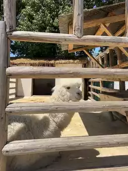 There is a small play area for kids, not large but enough for little ones to burn off energy. The fish-catching area allows you to catch fish. The petting zoo features alpacas and peacocks. At this season, the small garden’s roses are blooming beautifully, and the hydrangeas are about to bloom.