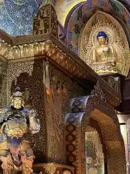 Zen Architecture: Stroll the "Mountain of Ten Thousand Flowers" path to the palace, passing mirrored pools and stone-carved apsaras (heavenly nymphs).