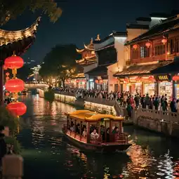 Night: Qinhuai River night cruise🚢 amid dazzling lights