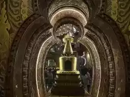 ④ After exiting the Reclining Buddha, follow the signs to the underground palace entrance. Be sure to wear disposable shoe covers, then take the escalator down to the fifth underground level. From there, continue your walking tour upwards. The Buddha's relics are located six levels below the ground floor of the underground palace, accessible only at designated times. The construction of the underground palace is truly remarkable, and it's worth taking a moment to admire the exquisite statues and murals.