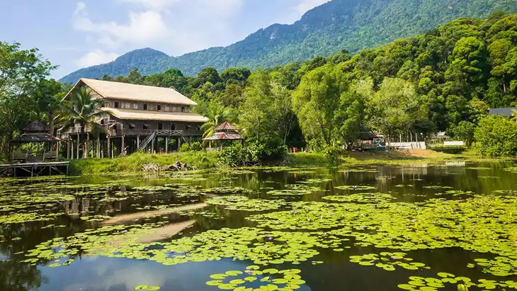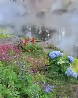 3️⃣ Perfume tulip area beside the wooden pavilion