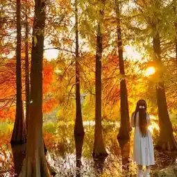 The lush green forest of Ming Xiaoling is so breathtakingly beautiful that words can't do it justice! The golden deciduous trees stretching out before your eyes, combined with their reflections in the water, create a scene reminiscent of Monet's garden—so beautiful it could bring tears to your eyes🎨. Occasionally, you might even spot black swans, adding an even more mysterious and enchanting touch to the scenery🦢.