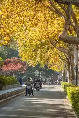 The ginkgo trees here are older, and their branches and leaves are particularly dense. Remember to shoot from a low angle to capture the entire golden expanse.