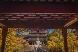 This is the best spot to view the ginkgo trees. The sculptures in front of the ancient buildings, paired with the ground covered in golden ginkgo leaves, create an incredible atmosphere! It's recommended to take photos between 9-11 AM when the light is softest.