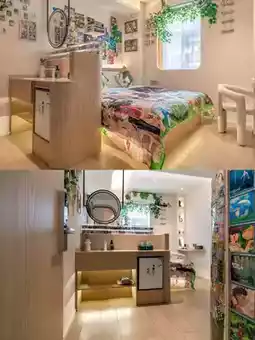 • Bursting with artistic flair: The common area decorated with greenery, fish tanks, and cute parrots is so fun. We stayed in the cartoon-themed room, and the kids were overjoyed seeing wall stickers and cartoon bed sheets everywhere~