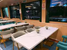 🌟 It got colder that day, quite cold, but since our boat had a performance, we stayed on the third-floor deck throughout the journey. It was too cold to take good photos, so my daughter, teammates, and I just enjoyed the night view, listened to music, and watched the dance, feeling the joy of vacation.
