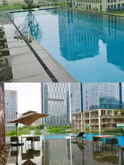 Staying here also allows you to enjoy the infinity pool🌊, the L-shaped design of the pool facing the high-rise buildings of Wuxiang, giving a feeling of being on vacation in Singapore!