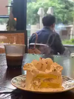 🍮Planned to find a place for afternoon tea, wore a green dress today, chose the nearby yf coffee with a retro style, this place is photogenic👍recommend
