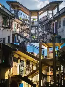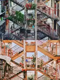 Built in 1987, it has a history of more than 30 years. It consists of two 7-storey residential buildings, connected by a two-way staircase in the middle, with each floor interlocking with the next, forming a unique architectural style. This design not only saves space, but is also full of retro and literary atmosphere, making it a popular check-in spot for internet celebrities.