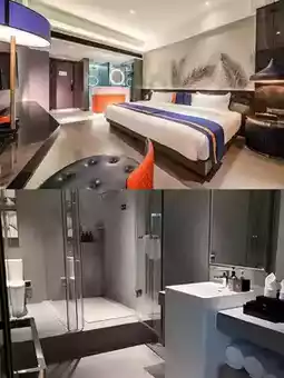 🔷 If you're visiting Nanning and I could only recommend one hotel, it would definitely be Champs Elysees Yuzun Hotel. The rooms are 50m² and come in six styles. I booked the Middle Eastern style room, and the mattress was very comfortable. It's a King Koil mattress from the US, and I give it a perfect score of 100 for comfort.