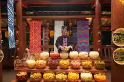 Made with natural plant dyes like red-blue grass, maple leaves, and yellow ginger, the five-colored glutinous rice symbolizes abundant harvests. Each soft, sweet bite carries rich flavors. It's not only essential for ceremonies but also a spring delicacy. This rice embodies harvest prayers and represents both delicious taste and good fortune in traditional festivals.