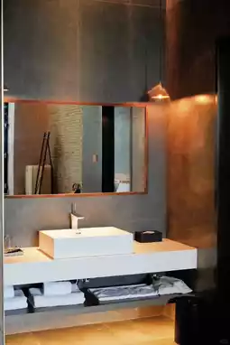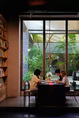 Stay here, with the sound of raindrops in your ears and the "forest projection" of rocks and trees in your view. Pair it with a cup of the hotel's signature coffee, and for some, it's healing, it's liberation 🌧️