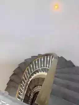 Oversized floor-to-ceiling windows and patio location on the second floor