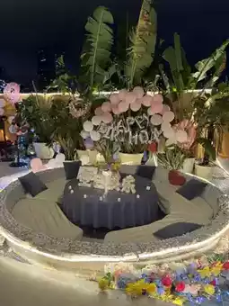 The environment is romantic and full of atmosphere, suitable for couples celebrating birthdays or groups of friends having parties.