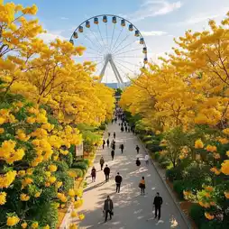 The kilometer-long flower corridor and the Ferris wheel are in the same frame. The aerial view is so beautiful that it takes your breath away. Every frame is a blockbuster.