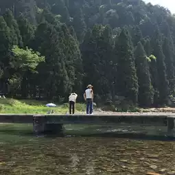 The water of the Yura River that flows nearby is so clear and relaxing.