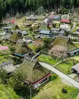 Strolling among cherry blossoms and cedar forests, over 50 thatched houses look like scattered gingerbread houses🍄 The oldest building is over 200 years old! Villagers still maintain traditional lifestyles, and you might occasionally see grandmothers drying wild vegetables in front of their houses~