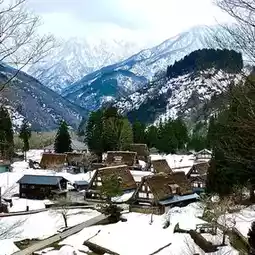 Ainokura Village, a World Heritage Site, is an ancient village registered as a World Heritage Site in 1995. It is the most remote village in the Gokayama area. During winter, the snow here is very thick, and visitors can hike up the hill within the village to reach a viewpoint overlooking the village. Some of the houses are open for visitors to explore (admission fees apply).