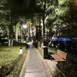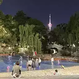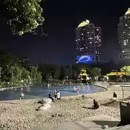 It is lit up at night, and the pool is open in the summer, making it a great place for a walk or to feel the local atmosphere.
