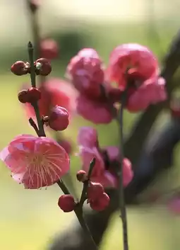 Watching a river of spring water, observing the sunrise and sunset, admiring the plum blossoms in the spring picture