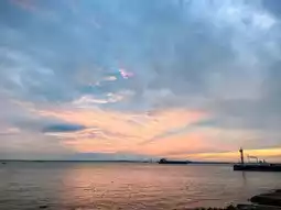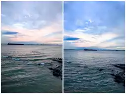 The ever-changing sunset glow and the slowly sinking sun in the river are very beautiful.