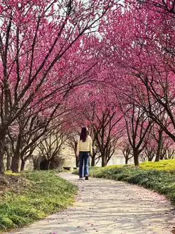 Filmed on March 2nd, Dream Island, a large area of plum blossoms are in bloom, and the cherry blossoms by the lake are also in bloom. They are super beautiful, like a waterfall.