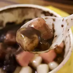 If you are a sesame lover, I recommend you choose this! The warm and thick sesame paste paired with the sweet sugarcane ice will give you a pleasant surprise. The ingredients include white jade rice balls, tapioca pearls, and taro balls that taste like taro, but not that fake taro spice flavor.