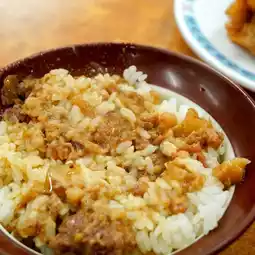 The braised pork rice has a mix of fat and lean meat. The amount of meat is not much, but the rice is delicious with the gravy.