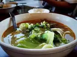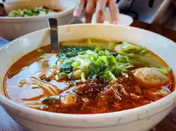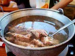 Niu Pa Hu soup is a clear stew of beef or beef offal, and it also uses Yunnan's unique spices, probably mint and coriander. A dipping sauce made with soup base served in a small dish. Because it is stewed until it is very soft, it is called Pa Hu. The taste is actually similar to beef consommé, but the seasoning is more Southeast Asian and uses spices. The meat is also very soft.