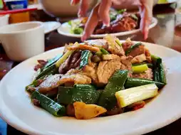 The pepper and sesame chicken and stir-fried pork performed poorly. The pepper and sesame chicken tasted ordinary, the pepper and sesame feeling was not strong, and the skin was not crispy. I personally choose pork belly for twice-cooked pork, and the slices are cut a bit thick. Pre-treatment did not soften the meat. So it tastes very hard. Moreover, the taste of twice-cooked pork is different if it does not contain second-cut pork. The seasoning is heavy and a bit salty.