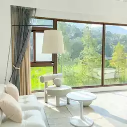 Located near Sun Moon Lake and the famous sunrise spot Jinlong Mountain, you can reach the 'Love Sticking Together Designer B&B' by following a winding path. The pristine white exterior complements the exposed concrete architecture, with 7-meter high glass windows allowing natural light to flood in! Combining local culture and modern fashion, the space is warmed with old wood and the gentle stones from the stream calm the mind. The air is filled with the scent of Jinlong Mountain cedar.