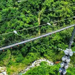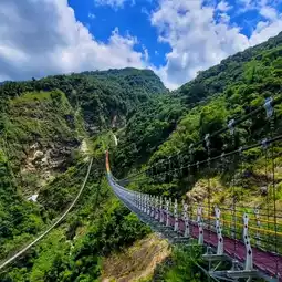 Shuanglong Suspension Bridge is located in Xinyi Township, Nantou County, and is a popular tourist attraction. This suspension bridge spans between two valleys, with a total length of about 342 meters. Its most famous feature is the dragon-shaped sculptures at both ends of the bridge, symbolizing good fortune and prosperity. The design of the bridge combines traditional culture with modern technology, offering visitors an excellent vantage point to enjoy the magnificent mountain scenery.