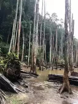 In such weather, one can truly feel the meaning behind the name 'Forgetfulness Forest,' as if all worries and stress are washed away with the rain. Despite the muddy paths, we felt relaxed and content, thanks to the tranquility and harmony with nature.