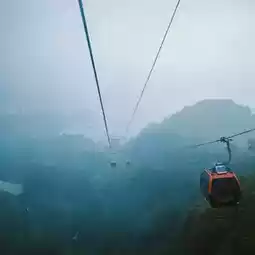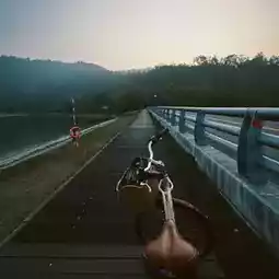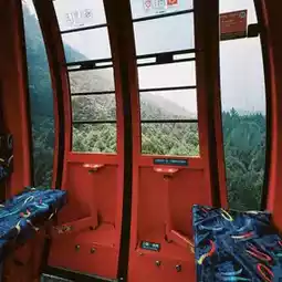 Then we went to sit in the cable car to see the view. This is the most beautiful. You can open the windows to see nature. Before we went back, we asked to ride a bike to see the lake view. 😂