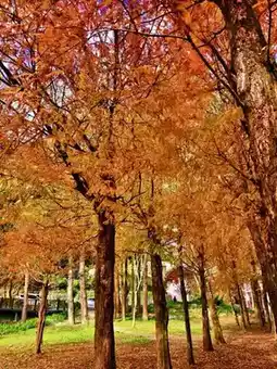 As autumn arrives and the weather cools down, the changing colors of the maple and bald cypress trees catch the eye, but it is the romantic 'golden rain' formed by the falling yellow ginkgo leaves that is most beloved. The artificial Ginkgo Lake in the area is flanked by ginkgo trees on one side and dawn redwoods on the other, creating a stunning reflection in the lake, making Ginkgo Lake a popular spot in the park.