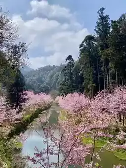 On a cool spring day, I stepped into the Shanlinxi Forest Ecological Resort in Nantou. Layers of mist shrouded the lush green mountains, and the cherry blossoms were quietly blooming. Walking along the winding trail, pink Yoshino cherry blossoms and crimson mountain cherry blossoms intertwined among the lush fir trees. Their petals danced in the breeze, landing on the moss-covered stone steps, adding a touch of poetic spring scenery to the tranquil forest. Mist shrouded the forest, and the distant cherry blossoms loomed in the mist, resembling a fairyland. The occasional squirrel hopped lightly in the treetops, and the chirping of birds echoed through the forest, adding a touch of vitality to this tranquil sea of flowers. Strolling slowly along the stream, the gurgling water reflected the cherry blossoms, creating a shimmering scene like a flowing spring scroll. As the afternoon mist thickened, the shadows of the cherry blossoms blended with the mist, creating an even more dreamy and enchanting scene. The setting sun cast its golden light through the gaps in the fir trees, gently falling on the petals, casting a gentle glow. I stood there for a long time, deeply memorizing the beautiful cherry blossoms of this paradise on earth, and feeling the tranquility and poetry of spring quietly blooming deep in the fir forest.