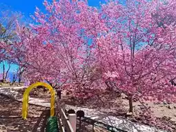 During the cherry blossom season, this place becomes even more beautiful like a fairy tale world. Cherry blossoms are in full bloom all over the mountains, and the tender pink petals contrast with the emerald green grass. Every time you press the shutter, you will get a beautiful photo. 📸 The breeze blows, and the cherry blossoms fall like rain, which is extremely romantic.