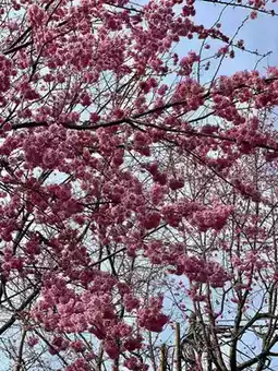 As you step into the farm, cherry blossoms bloom all over the mountains, creating a pink sea of flowers that is poetic and picturesque. On the branches, the flowers cluster together, charming and lovely, sparkling under the sunlight.