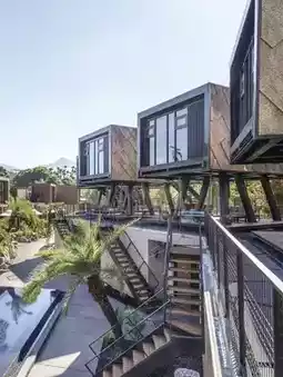 The main building of the hotel combines the texture of logs, plaster and natural stone, which is both modern and low-key. The appearance is simple, but once you walk into the interior, you will find that the sense of space is very delicate-large glass brings in natural light, and the interior space uses a lot of light wood and lime walls, combined with the brand's unique planting style and cultural elements, which is both quiet and design-oriented.