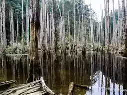 Although the standing dead cedar trees may seem lifeless, the earthquake-created pools are actually vibrant ecosystems. Beneath the water's surface, lush aquatic plants thrive, and large tadpoles swim freely. Occasionally, frogs can be spotted hopping on the muddy ground. The forest is alive with the sounds of chirping insects, singing birds, and the harmonious calls of frogs and cicadas, offering visitors a symphony of nature.