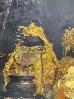 The Tudigong statue bears a benevolent expression, as if listening to the hearts of each believer.