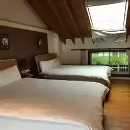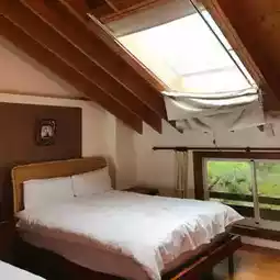 This time we chose a two-story six-person room. The basement floor has a bathroom, a large double bed and a terrace, from which we can clearly see the sunrise and sunset! The upper level also has two double beds! And there is a skylight, so you can see the stars while sleeping in bed. @ Cingjing Ai Li Jia Tourism Homestay