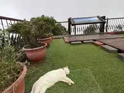 Baiyun Resort also has a large outdoor viewing platform, and if it's foggy, the view is truly breathtaking! Unfortunately, the day we arrived was shrouded in thick fog, so we enjoyed playing with cats and enjoying drinks from the supermarket, feeling completely at ease in the mist.