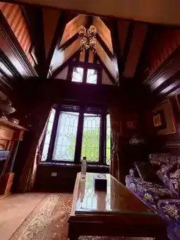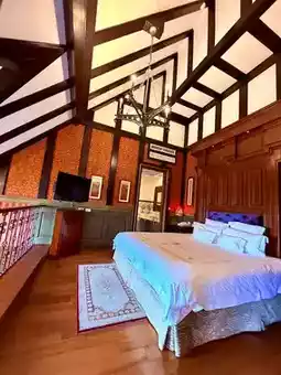 Built in the Tudor architectural style, this manor is surrounded by mountains and features spacious rooms with exquisite interior design and decorations. Each room is equipped with a fireplace and top-notch audio systems.