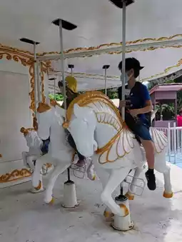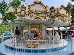 Thrilling Experiences: The challenging "God Ride" (a human-powered roller coaster) and the VR "Exploration Spaceship" adventure. Family Fun: Enjoy a dreamy carousel, mini pirate ship, candy train, fun air cushions, and a shaded family sandpit, ensuring fun for both adults and children.